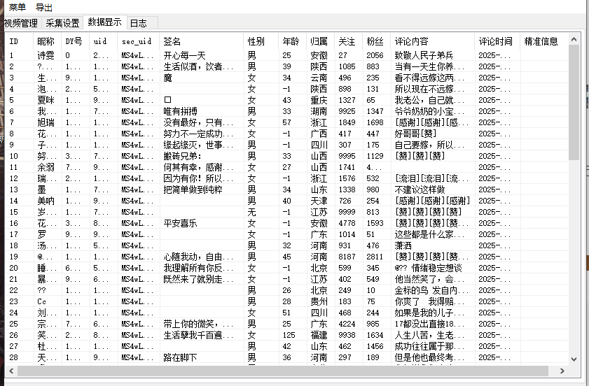 - 支持 ** 性别、地区(如江西、广东、浙江等)、评论关键词(如 “寻乌”“帅”)、用户名(如 “用户”)** 等多维度筛选,精准匹配你的目标客户画像;